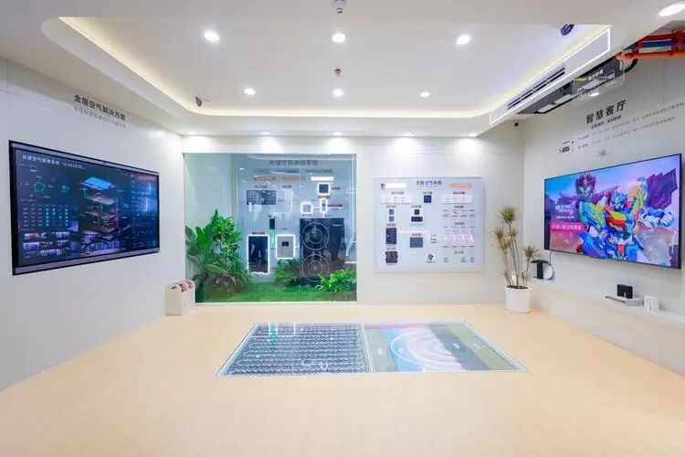 拿空调来说,现在的空调产品都能做到冷暖调节,却难以在风感、噪音、美观、温湿平衡等方面实现兼顾。但在海尔智家的卡萨帝展区内,一款“隐形”空调就做到了。它不是一台传统空调,而是卡萨帝基于行业首个五恒空气解决方案打造的全屋智慧健康空气系统。因为没有出风口和内机,外观上就做到了“隐形”;用系统用水代替冷媒还没有出风噪音,听觉上也实现了“隐形”。除此之外,卡萨帝的五恒空气解决方案还能做到空气的“专属定制”。比如针对常年潮湿的南方家庭,它能做到温湿度独立控制,除湿不降温;针对春秋季干燥的北方家庭,它又能引出加湿新风,保证空气湿润洁净。这种改变以往的空气体验,也让现场很多人走进了五恒体验间,去亲身感受恒温、恒湿、恒氧、恒静、恒净的“五恒”好空气。