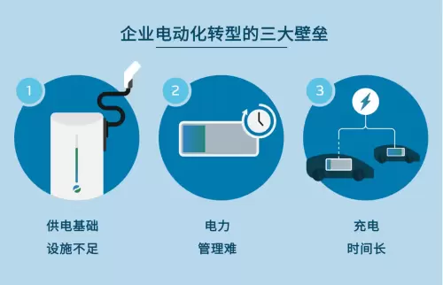对于持有相当数量车辆的企业来说,电动化转型不仅仅是把持有的汽车换成电动汽车,横阻在企业面前的还有三大壁垒,即充电供电基础设施不足、充电时间延长、电力管理障碍。其中电力管理障碍主要是指当大量的汽车同时充电时,很可能会出现超额使用电力的情况,如何根据可利用的电量,对什么时间给哪一辆车充电进行电力管理也是企业电动化转型的重要课题。为了跨越壁垒,便意味着需要设计和实施从发电到蓄电、充电和再利用等整个能源管理结构。