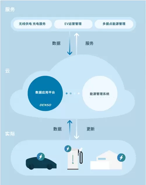 电装的数据应用平台从电动汽车、充电器和发电系统等相关设备中获取数据,并通过高度可靠的数据控制技术对其进行安全的管理。