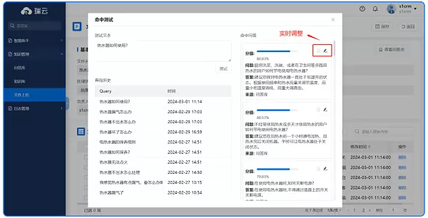为了确保生成的问答质量,瑞云服务云还提供了对话效果测评功能。用户可以在线模拟客户提问,测试对话效果。若对生成的问答不满意,还可以实时进行调整,确保问答内容准确、全面。在测评无误后,用户只需一键操作,即可将生成的问答发布到问答库中。