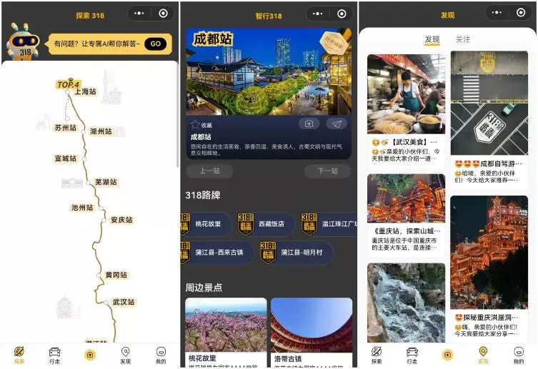 智行318基于天工AI大语言模型,为318公路旅行者提供智能创新服务。它支持AI搜索、对话,实时获取路况、天气和景点推荐等信息;并可智能规划行程,支持318路牌打卡、行程笔记,一键分享美好瞬间等功能;精准满足用户需求,为旅行者提供了 “千人千面”的AI对话体验;同时,智行318还具备AI创作和一键扩散功能,利用AI技术赋能318公路IP的全网传播。