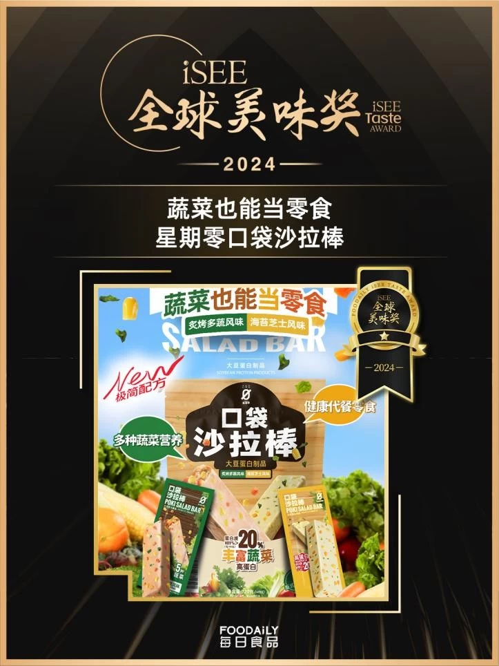 3月20日,食品饮料行业权威领先奖项iSEE全球美味奖公布,星期零口袋沙拉棒从全球4000+参奖案例中脱颖而出,斩获iSEE全球美味奖1星奖章。