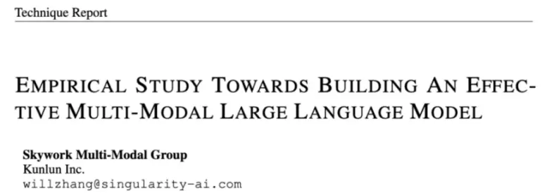 同时,昆仑万维天工大模型团队还公开了名为《Empirical Study Towards Building An Effective Multi-Modal Large Language Model》的技术论文。
