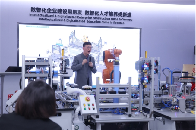 随后,新道科技新工科事业部副总经理周海伟演示了“精智”工业互联网数智工厂实训平台的操作流程。
