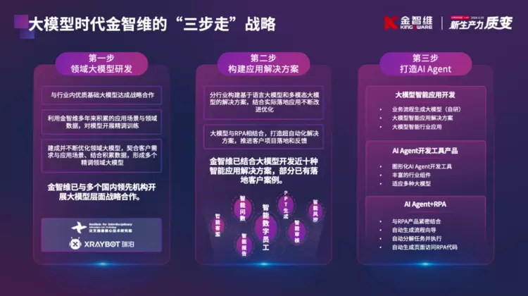 立足大模型应用爆发年,金智维将持续聚焦自身擅长的技术能力和场景,以基于RPA+LLM打造的AI Agent,助力千行万业打造新质生产力,助推数字中国建设!