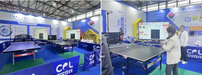 安道教育携智能交互平板现场结合乒乓球发球器、摄像机和测评软件等设备,实现人像跟踪、检测乒乓球的实际落点以及实时计算和展示比分。安道教育技术装备的实践运用场景,让每一位参观者置身于一个充满智慧与创新的教育课堂。装备育人,启智未来,科技赋能教育高质量发展势不可挡。