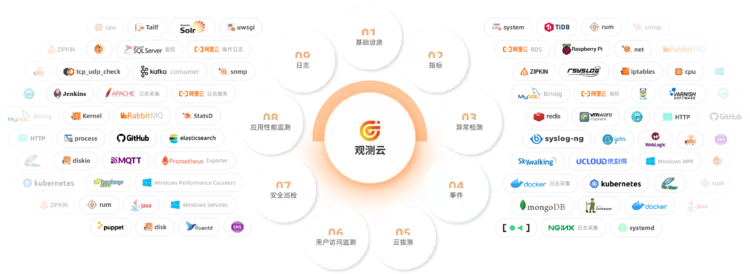 不同于开源自建监控方案需要为每一个技术寻找对应的解决方案,观测云的集成性体现在其对超过 400+ 以上技术栈采集模板的兼容性,包括各种云服务、数据库、应用框架等,以及对主流开源方案的支持。这使得企业能够轻松地将观测云与其他IT基础设施进行集成和对接,实现无缝协作。此外,观测云还提供了丰富的API和插件接口,方便企业进行自定义开发和集成,无缝集成到现有的 IT 基础设施中。观测云还提供了 DataKit 和 DataFlux Func 等工具,进一步增强了其在数据采集和处理方面的能力,确保了监控数据的准确性和实时性。