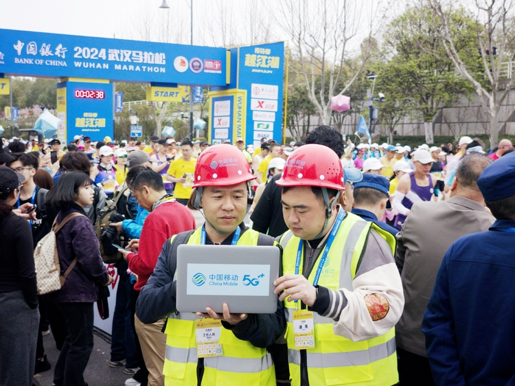 湖北移动工作人员在“汉马”现场护航网络畅通