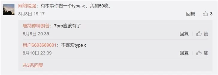 早在8日时,360手机总裁李开新的一则微博内容评论区内,有网友就提及过相关Type-C的问题,表示非常期待360手机新品能够拥有这个接口,现在感觉这个愿望就快要实现了。