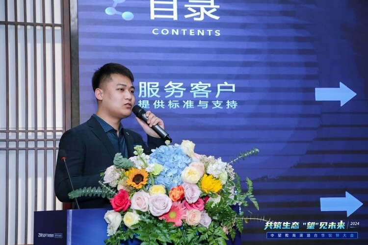 会上,中望教育事业部渠道总监辛旭详细介绍了中望教育的业务体系和产品模式,基于渠道合作利好政策,详细阐述了注册伙伴报备原则及签约伙伴保障体系。并表示中望软件将以完备的合作保障与支持标准,代理商伙伴们相互赋能,共赢可持续合作模式。