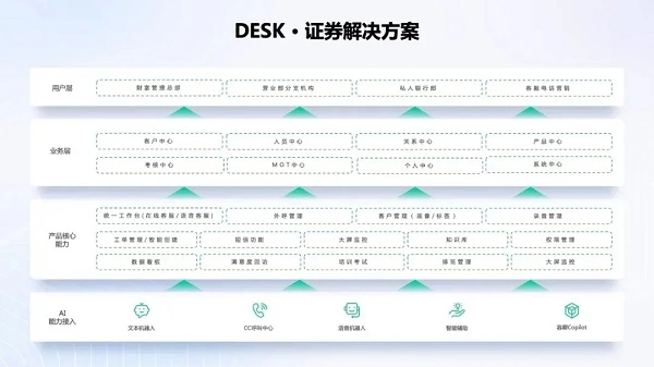 传统的客服中心业务趋势正从“单一的客户服务”转型为“全面的客户经营”,为符合未来营销服一体化的业务需求,容联云依托自身数智化技术,以“智能+通讯+数据”的全生态产品作为核心驱动力,打造容犀DESK平台。
