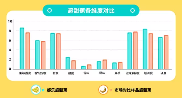 得益于都乐菲律宾自有农场得天独厚的地理环境优势,以及当地都乐果农全年的悉心呵护,每一根消费者购买到的都乐超甜蕉均经受住了多轮品控筛选的考验,展现出卓越不凡的品质。根据国内唯一的国字号绿色食品公司中国绿色食品有限公司旗下熊猫指南感官实验室感官盲测报告,都乐超甜蕉在果实完整度、香气浓郁度和甜度维度上,均优于市场上普通超甜蕉。都乐超甜蕉以其甜度优异、口感细腻、滋味浓郁、肉质软糯的特点,在各香蕉品种评测中脱颖而出,获得综合感官评估最高分,成为熊猫指南实验室强烈安利产品。不同于市场上部分普通香蕉酸涩的不佳体验,都乐超甜蕉恰到好处的微酸让其入口丝滑的奶油口感和超甜软糯的风味更加突出,如此优越的好味道不愧是畅销多年的明星水果。