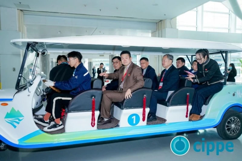 展会现场,在中国会展经济研究会副会长、振威国际会展集团董事长张学山的陪同下,第十二届全国政协副主席马培华,国家公务员局原副部长级副局长、中国国际经济技术合作促进会党委书记、理事长杨春光,中国石油和石油化工设备工业协会会长刘宏斌等一众领导,也现场体验了氢能领域的创新成果——乘坐着由新氢动力研发的氢能观光车,对HEIE氢能展及cippe2024各大展馆进行了巡馆参观。
