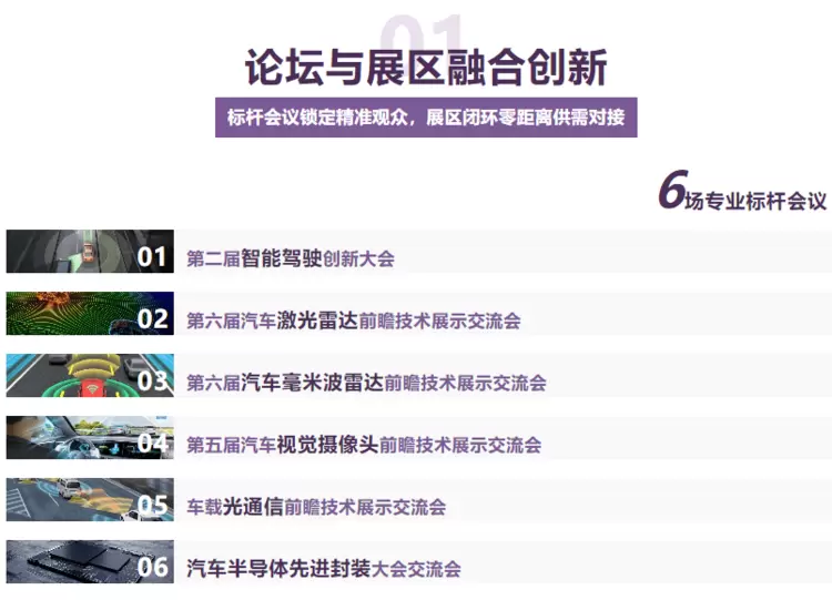 汽车半导体/车规级先进封装技术展区车规级半导体主控/计算类芯片、功率半导体(1GBT和MOSFET)、车规级SiC模块、电源管理芯片、汽车电子微组装及功率器件、封装测试设备、自动化设备等,AI芯片、方案、算力芯片及方案、算法方案,数据存储、光电共封装模块及技术和设备等