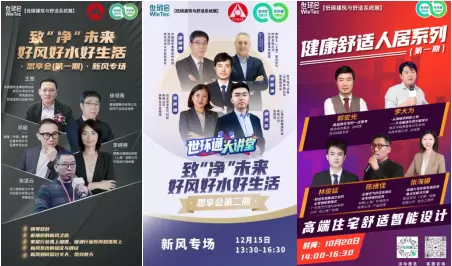 《世环通大讲堂》是世环通平台为上百万会员用户和企业开办的一档线上专题活动栏目。大讲堂依托平台庞大的影响力,邀请行业权威专家、资深学者、重量级企业代表、施工方、渠道商、以及终端业主等嘉宾参与其中,解读行业标准、探讨产业趋势、分享优秀工程案例以及终端用户的需求和心声。2023年,《世环通大讲堂》系列直播共计举办了13场线上活动,邀请25位演讲嘉宾,累计观看观众人数65,000+。2024年截止目前为止已经开办了两场,之后将围绕健康人居、多能源互补、智慧园区等主题展开线上直播。