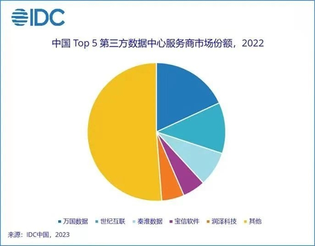 万国数据在IDC发布的《中国数据中心服务市场(2022年)跟踪》报告中,以绝对优势占据中国第三方数据中心服务商市场份额首位。