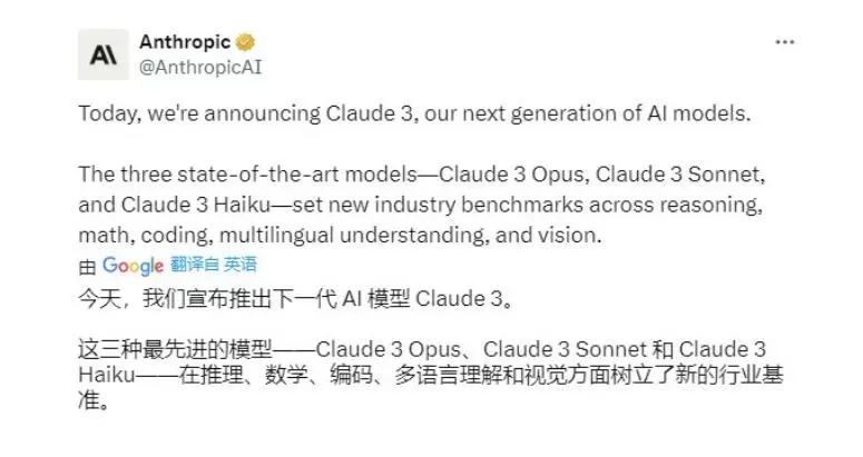 3 月 5 日消息,OpenAI 最强对手 Anthropic 发布 Claude 3 系列模型,带有三个高性能的模型形态,按能力升序排列依次是:Claude 3 Haiku、Claude 3 Sonnet、 Claude 3 Opus,并宣布在AI逻辑基准测试中超过了ChatGPT-4。
