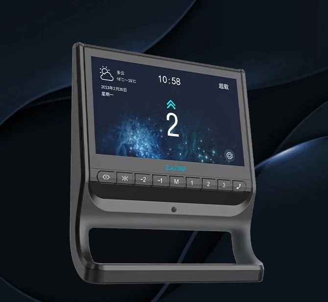 ZADIM希贝姆家用电梯全新推出的Z9100系列拥有专属升级一体化操纵箱——16.5寸液晶触屏+实体按键,独创设计,经典大气,屏幕清晰、操作简单。