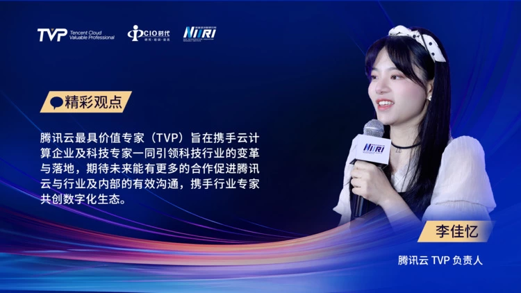 据李佳忆介绍,TVP的成员背景多元化,对数字化转型领域均有深入研究。这些成员包括知名企业的数字化转型负责人和科技公司的高层领导,他们共同在TVP平台上输出优质观点,推动了一系列活动的成功举办。未来,TVP将更关注对数字化转型深水区的风险与机遇。期待通过腾讯云TVP计划,将AI与数据技术的发展与实际行业需求紧密结合,以技术创新推动整个行业的持续发展和进步。并呼吁更多行业专家加入TVP行业大使计划,在这个时代共同构建健康的行业数字化生态系统。