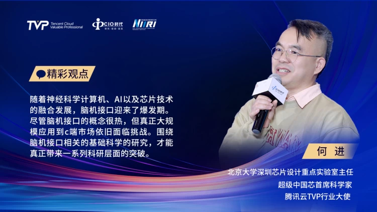 除了人工智能与数据以外,近年来还有一项前沿技术备受瞩目:脑机接口技术。腾讯云TVP 行业大使、北京大学深圳芯片设计的重点实验室主任、超级中国芯首席科学家 何进教授的演讲为我们带来了脑机接口领域的最新进展。