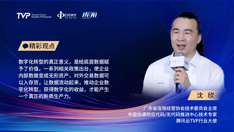 在零售行业的数字化浪潮中,AI与数据资产的结合是必然的趋势。广东省连锁经营协会技术委员会主席、中国信通院低代码无代码技术中心、腾讯云TVP行业大使 沈欣在《AI与数据资产引领零售行业数字化新思路》的演讲中强调,在零售行业,数据已从单纯的管理过程中的副产品转变为核心资产。因此,数据产品化也十分重要。企业不仅需要收集和存储数据,还应将数据转化为可流通、可交易的产品。这个过程可以增加数据的经济价值,并开辟新的收入渠道。