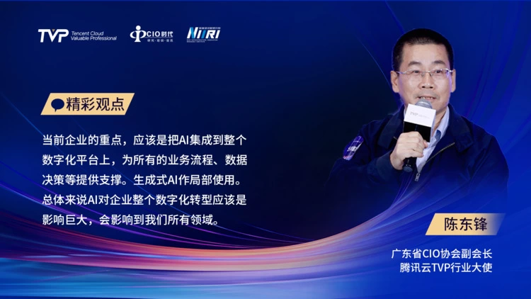 广东省CIO协会副会长陈东锋:我认为AI在企业中的应用正逐渐深入并变得越来越重要。AI的应用可以分为几个阶段。最初,我们利用AI进行数据分析和预测,作为数字化转型的起点。接着,大模型AI逐渐成为企业的助手,支持市场数据分析、营销创意和文案制作。在人力资源方面,AI的作用同样显著,它能够提供智能化的招聘和员工关怀。然而,AI在某些专业领域的深度应用还有待提高,如今仍需要人的介入和判断。我的房地产行业经验也告诉我,IT部门的角色正在变化,比如通过社交媒体、KOL进行房屋销售。总而言之,AI技术正成为企业核心能力的重要组成部分,既优化现有业务,也开辟新的机遇。