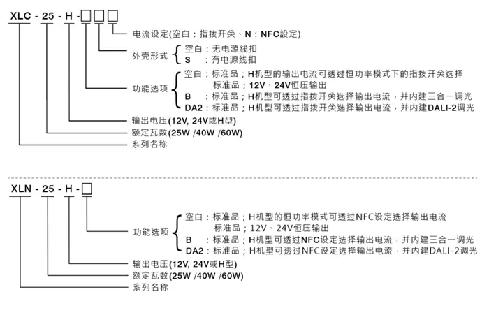 新一代XLN-25/40/60W和XLC-25/40/60系列提供小型化设计,IP67防水等级,以及通过DIP-Switch或NFC调整输出电流的便利性。产品支持多种调光接口,如DALI-2、KNX和Matter (IoT),实现最低0.1%亮度调光。