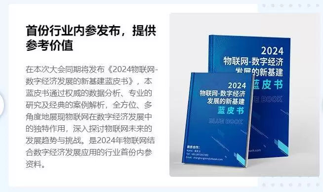 同期主论坛将发布《2024物联网-数字经济发展的新基建蓝皮书》,本蓝皮书致力于探讨物联网在数字经济发展中的重要地位,并深入剖析物联网如何作为新型基础设施推动数字经济的创新与发展。蓝皮书通过权威的数据分析、专业的研究及经典的案例解析,全方位、多角度地展现物联网在数字经济发展中的独特作用,深入探讨物联网未来的发展趋势与挑战。也是2024年物联网结合数字经济发展应用的行业首份内参资料。敬请期待!