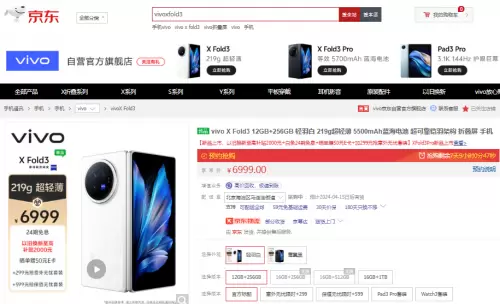 目前,来京东参与vivo X Fold3系列预售可享24期免息、以旧换新至高补贴2000元等福利,还可加299元抢包含1年全保维修+30天超长试用+200元复购补贴的意外无忧套装、加599/799元抢包含80%保值换新+1年全保维修+30天超长试用+200元复购补贴的保值无忧套装(其中,vivo X Fold3为加599元,vivo X Fold3 Pro为加799元)。此外,3月27日起,包括上海在内的30多座城市的消费者还可通过京东手机小时达入手vivo X Fold3系列,在京东APP搜索“vivo小时达”即可进入专属页面下单,新机将由vivo体验店极速发货,1小时到手新机,实现先人一步极速换新。