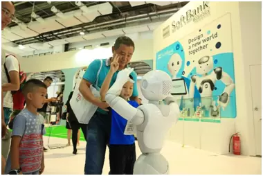 参观者与软银机器人Pepper互动