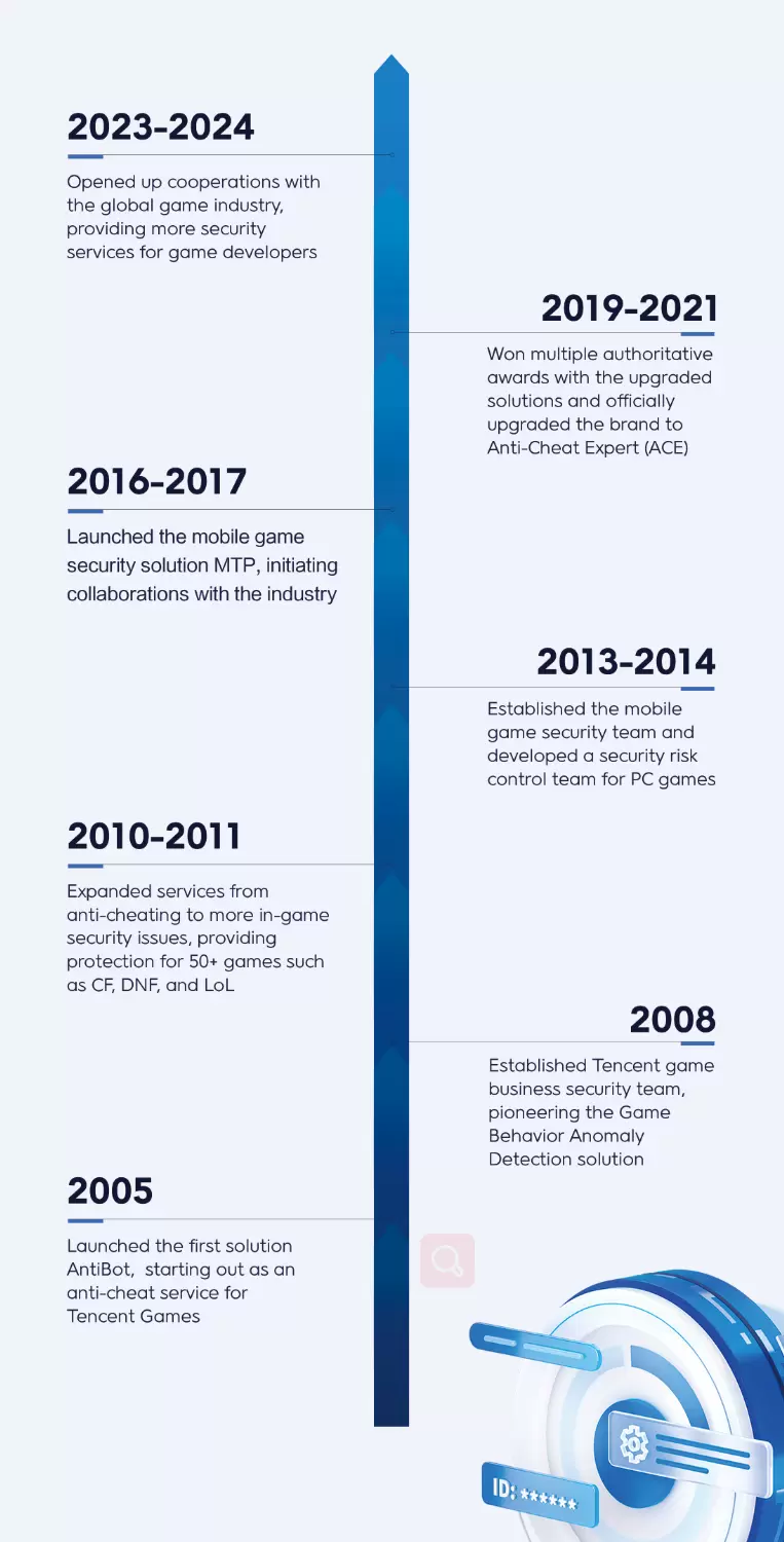腾讯游戏安全ACE作为腾讯游戏今年参展GDC的重要产品之一,是一支拥有着近20年的游戏安全运营对抗经验的全球化队伍。自2005年起,腾讯游戏成立反外挂小组的那一刻起,这支队伍便扛起了守护游戏,打造公平竞技游戏环境的重任!
