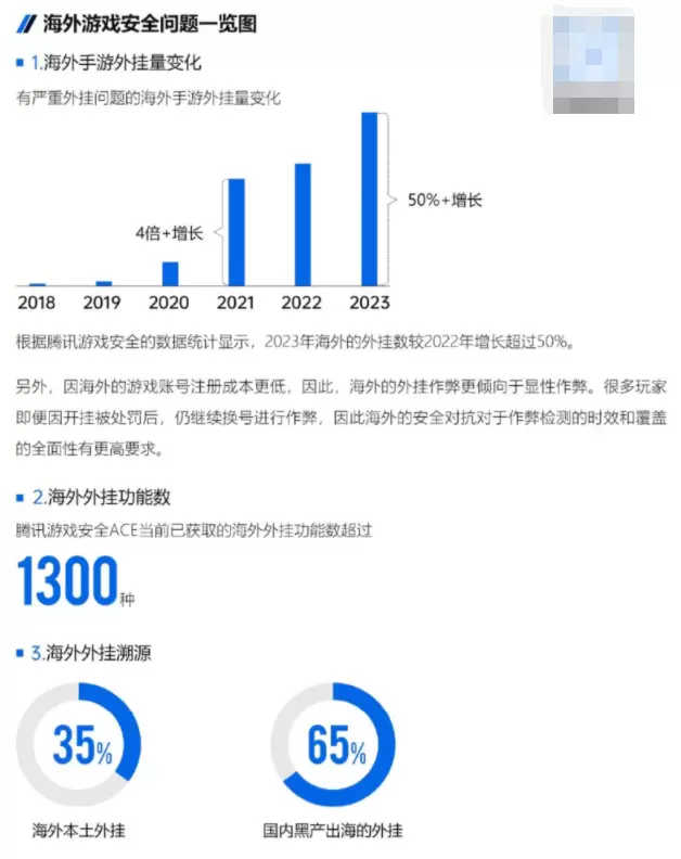 据《2023游戏安全白皮书》的数据显示,腾讯游戏安全2023年统计到的海外外挂数较2022年增长超过50%,另外,因海外的游戏账号注册成本更低,海外的外挂作弊更倾向于显性作弊。很多开挂玩家即便被处罚后,仍继续换号进行作弊,因此海外的安全对抗对于作弊检测的时效和覆盖的全面性有更高要求。