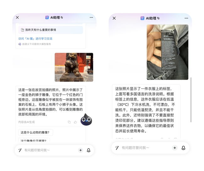 利用这一能力,用户还可以实现识图翻译或提取图片中的文字,让信息获取更加便捷。比如,不知道某件衣服的洗涤方式,把衣服标签拍个照发给钉钉AI助理,就可以翻译上面的英文。