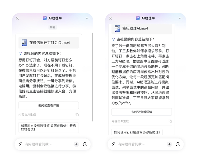 钉钉AI 已支持图像理解、视频速读,化身全能“小百科”