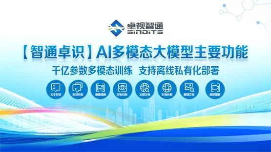 智通卓识AI多模态大模型基于先进的深度学习技术,采用千亿级、多模态图文及视频数据进行训练与优化,构建出一个庞大而精细的知识库。该大模型不仅支持云端部署以SaaS服务的形式提供服务,也可支持离线私有化部署。它采用了AI大模型与神经网络小模型相结合的形式,既能兼顾大模型的通用能力,也能支持小模型的识别精度和速度,同时它能够确保数据安全和隐私保护,更易于行业落地与应用。