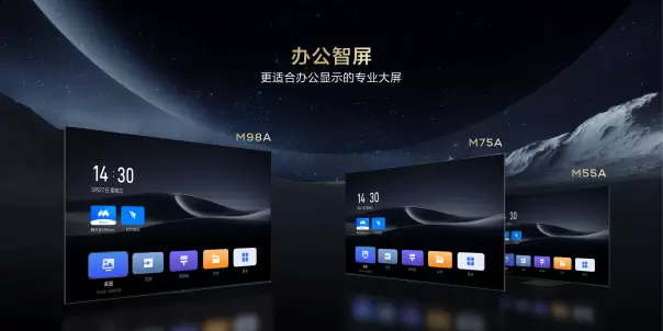 传统的办公大屏还是采用一般家用电视的瀑布流桌面,最多也就是开发一个会议模式,整体来说操作还是较为繁琐,功能也少,使用体验只能说是差强人意。