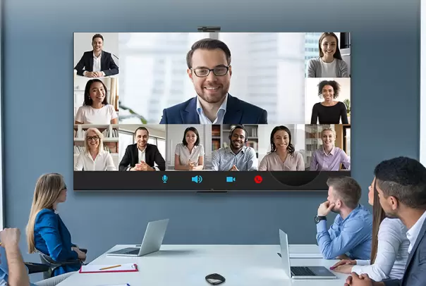 不同的会议室需要的办公屏幕大小是不一样,比如独立的私人办公室和小型会议室,更适合使用占地面积小,可以更灵活移动的55寸办公屏幕,而对于中大型会议室,培训室这样人数多、场地宽广的会议室,则需要更大尺寸如75、98、115吋的屏幕,才能有不错的参会体验。