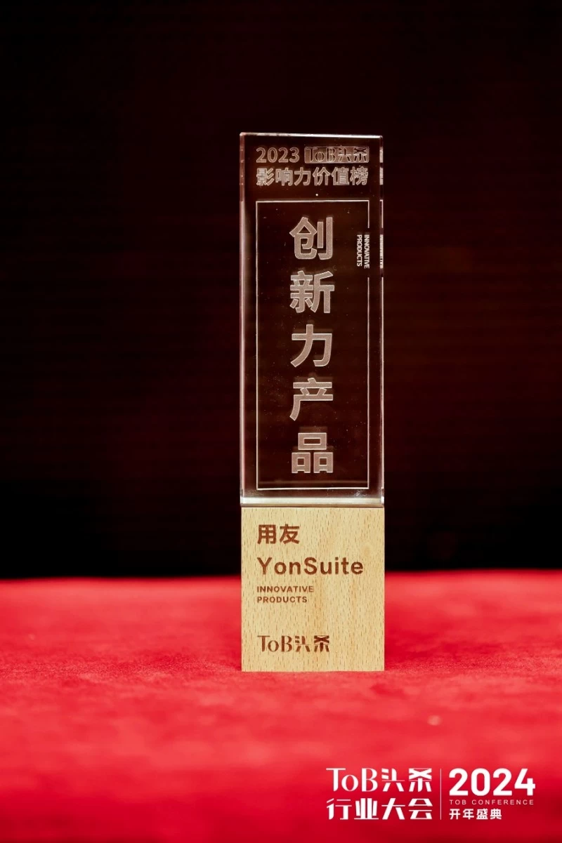 近日,由国内ToB领域知名媒体「ToB行业头条」联合3W集团共同举办的2024ToB头条行业大会上,用友YonSuite成长型企业商业创新平台凭借其卓越的平台创新服务能力和精湛的技术实力,荣获两项重量级大奖: