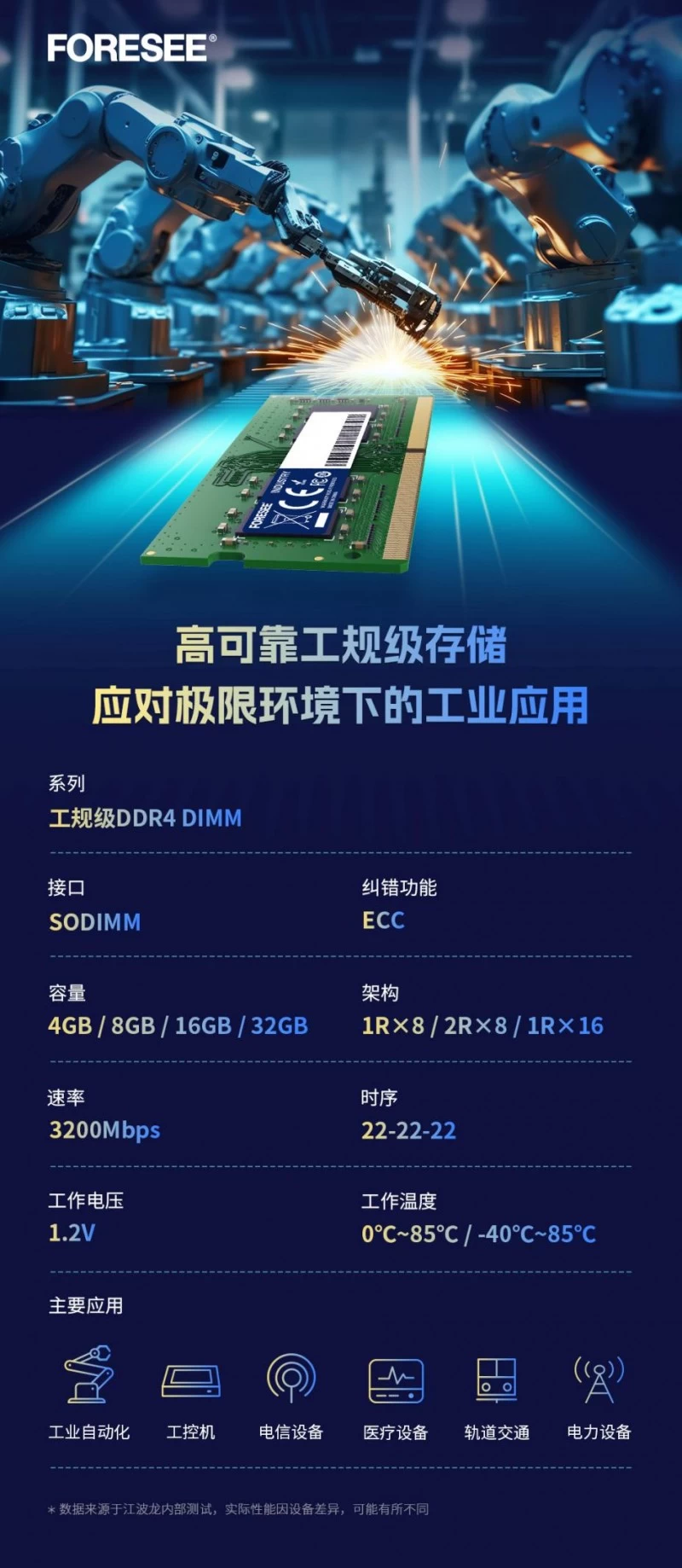 江波龙发布FORESEE全新工规级DDR4 SODIMM,为多个应用领域保驾护航