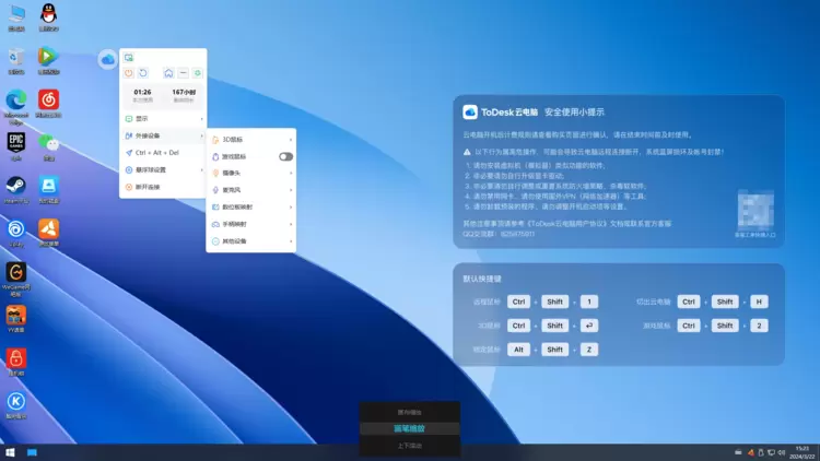 除超高性能显卡外,ToDesk云电脑还具备其他强大功能,例如适配数位板、各型号手柄等硬件插件,有效满足设计师、游戏用户群体等在不同场景下的专业操作使用需求。所采用的先进技术能够实现资源的动态分配和高效利用,在确保用户在使用时获得稳定的性能输出的同时还可支持多种操作系统和应用软件。