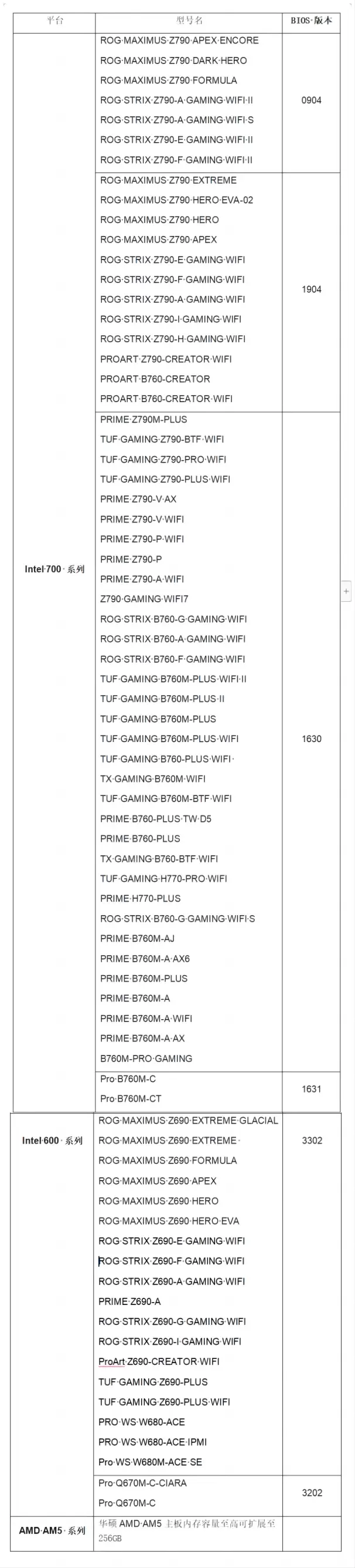 华硕Intel 700/600、AM5四槽主板支持256GB DDR5内存