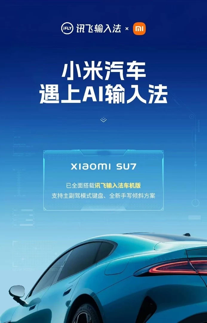 - 小米汽车SU7搭载讯飞输入法车机版 联手打造高品质智能座舱