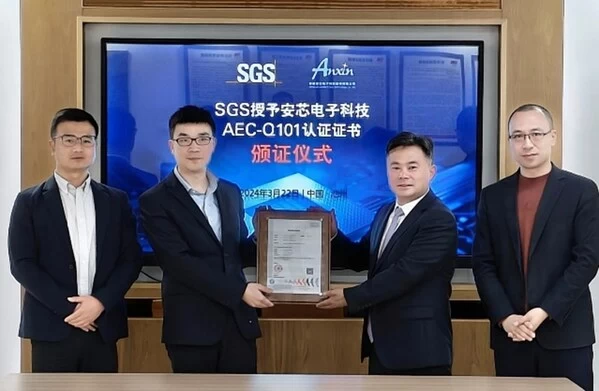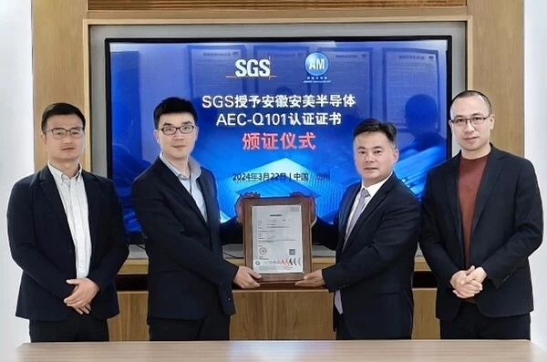 SGS授予安芯电子、安美半导体AEC-Q101认证证书
