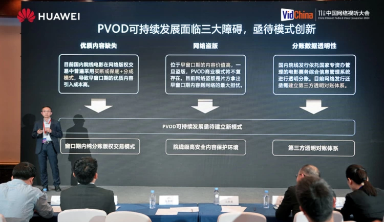 同时,华为视频联合伙伴从制定标准、丰富内容、版权保护、全场景分发等多维度共建 AiMax PVOD 家庭影院解决方案。其中,针对优质内容的版权保护和分账数据的透明性等网络电影发行的痛点,华为视频联合寰宇信任基于 ChinaDRM 版权保护技术,构建完整的 DRM(数字版权管理)保护方案和第三方可信对账系统,为优质内容提供可靠、透明、安全的发行环境保障。寰宇信任(北京)技术有限公司总经理分享到,DRM 是终端 OS 生态的核心能力,ChinaDRM 开放社区围绕鸿蒙生态 DRM 应用场景和应用痛点,提供了全场景的方案咨询和生态服务,可赋能鸿蒙生态数字版权管理能力构建,同时在鸿蒙生态下,通过与华为视频、内容出品方和发行方及鸿蒙终端等产业链全方位协同,ChinaDRM 将携手华为视频共同推进 PVOD 新模式健康可持续发展,为电影产业带来更多新的商业价值。