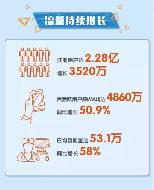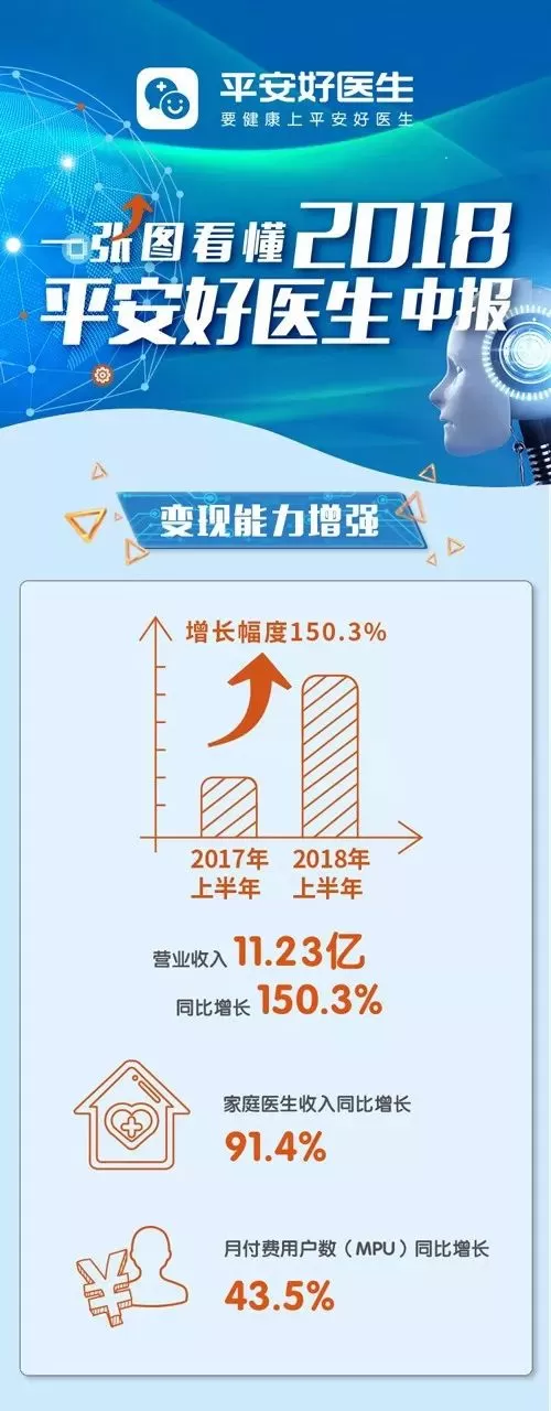 8月16日,刚刚上市三月有余的平安好医生发布了中报。根据中报,今年上半年,平安好医生营业收入11.23亿元,同比增长150.3%;注册用户达2.28亿,增长3520万;月活跃用户(MAU)数量达4860万,同比增长50.9%。