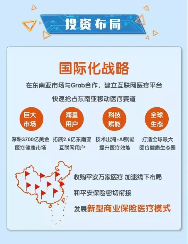 一个是巨头之间的“惺惺相惜”,平安好医生认可Grab的资源和地位,而Grab也认可平安好医生的模式和前景。另一个则是巨头合作的互补效应,平安好医生和Grab可以相互输送用户、技术资源,为对方带来更多的发展利好,正如合作中提到的“将平安好医生先进的AI医疗科技与Grab在东南亚庞大的用户基础和运营经验相结合”,具体来看这些利好有海外市场的增量空间、医疗生态资源的进一步扩充等。