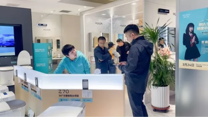 在范茹的精彩演唱之后,活动进入了高潮阶段。惠达卫浴旗舰店内人头攒动,消费者们纷纷驻足观看、咨询和选购心仪的产品。此次促销活动汇聚了惠达卫浴的多款热销产品,包括智能马桶、浴室柜、花洒等,每一款产品都展现了惠达卫浴在健康定制领域的卓越实力和精湛工艺。