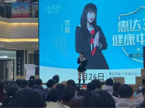 近日,国内知名卫浴品牌惠达卫浴在河北省唐山市红星美凯龙时代家居广场举办了一场盛大的促销活动,活动主题为“惠达315,健康中国家”。此次活动不仅吸引了众多消费者的关注,更邀请到了实力派歌手范茹亲临现场助阵,为唐山市民带来了一场难忘的购物盛宴。