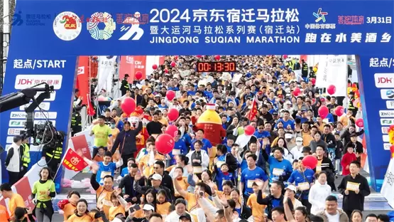 3月31日上午7时30分,2024京东宿迁马拉松暨大运河马拉松系列赛(宿迁站)正式鸣枪起跑,来自国内外的1.2万名跑友相聚在水美酒乡宿迁,用奔跑的力量与速度,点燃城市的激情与活力。