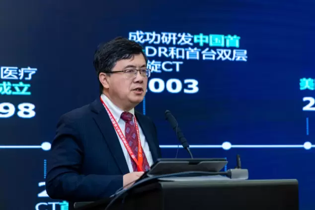 在第六届医疗装备创新发展论坛上,东软医疗副总裁程朝阳向与会嘉宾分享了公司持续聚焦前沿技术,突破CT、MRI、DSA、PET/CT、RT等的“卡脖子”核心部件,引领高端医疗装备协同创新发展的实践经验。